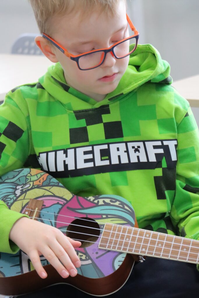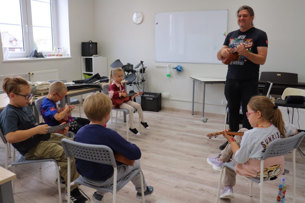 🎤 MUZYKA: zajęcia wokalne, ukulele, gitara i zespół muzyczny.