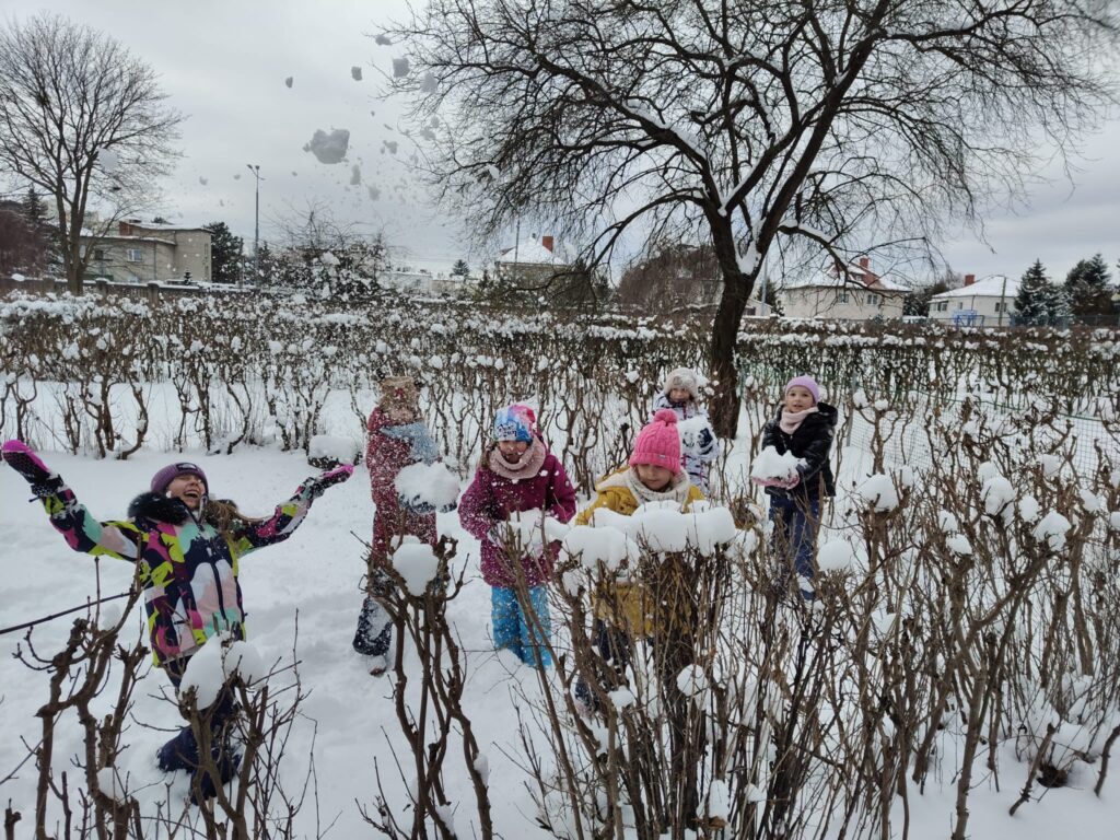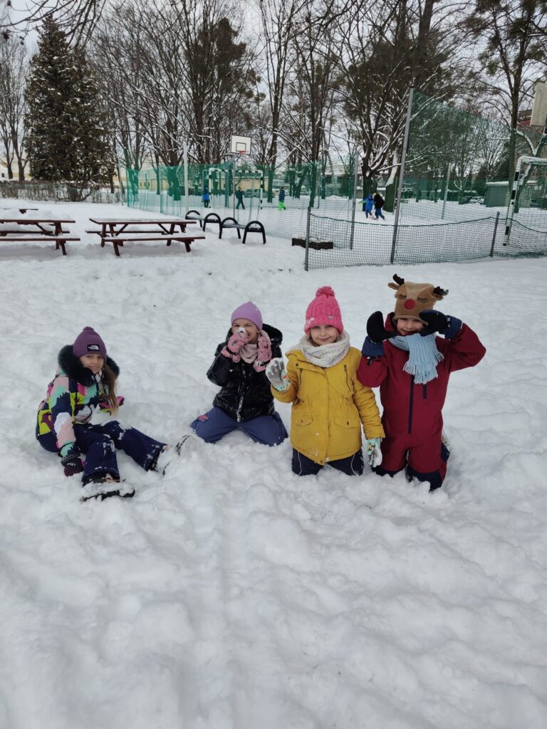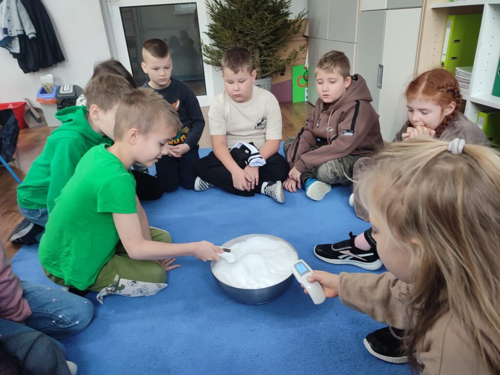 Wszyscy uczniowie cieszą się śniegiem. Drugoklasiści zbadali go dokładnie w swoim śnieżnym projekcie – sprawdzili właściwości i czystości śniegu, podjęli także próby zrobienia sztucznego śniegu.