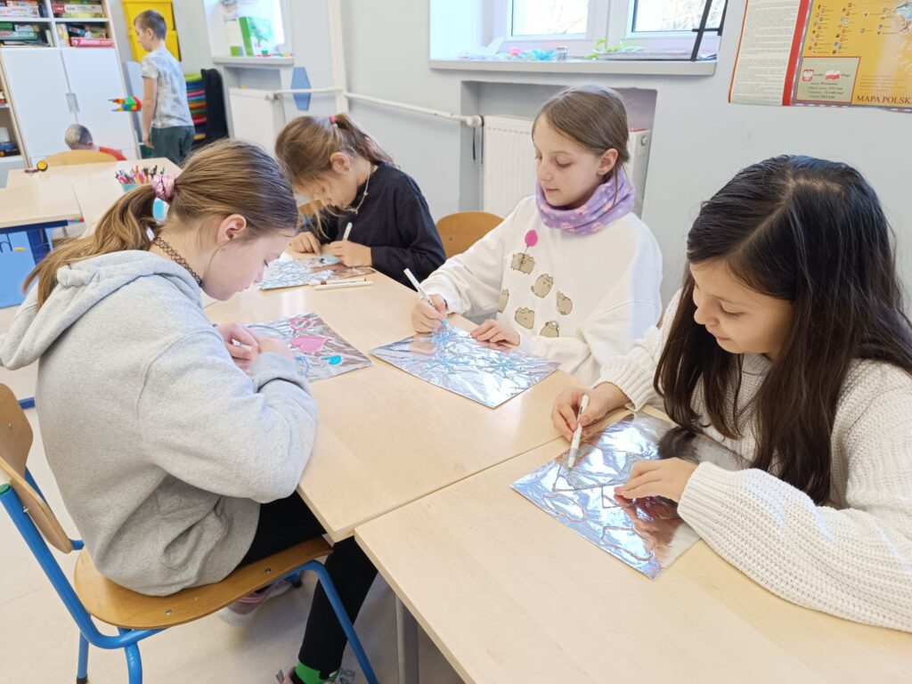 Trzecioklasiści intensywnie się uczyli oraz wykonali zimowe prace go korytarzowej galerii.